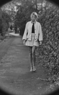 Pleated Skirt with Gold Button Accents